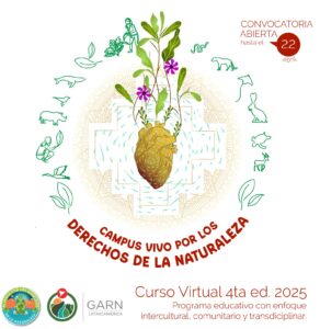 El Campus Vivo de GARN Latinaomérica es un escenario híbrido que vincula espacios y tiempos virtuales para la formación e investigación colaborativa y facilita la interacción de líderes y grupos en territorios locales en diversas regiones del continente, entretejiendo acciones de reflexión, formación, visibilización y acompañamiento a casos de vulneración de los derechos de la Naturaleza. Además de mezclar interacciones virtuales con acciones presenciales, el Campus está vivo porque, es un proceso para la inteligencia colectiva orientada al cuidado de la vida, que funciona como un cultivo que irá creciendo en torno a la comunidad de sentido que es GARN Latinoamérica.
